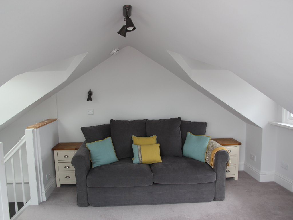 Sleeps 6 in a king and queen size bed, queen can split into 2 singles, further double, quality sofa bed in attic room. The king room is ensuite (TV) and the queen (TV) has the family bathroom adjacent to it.
